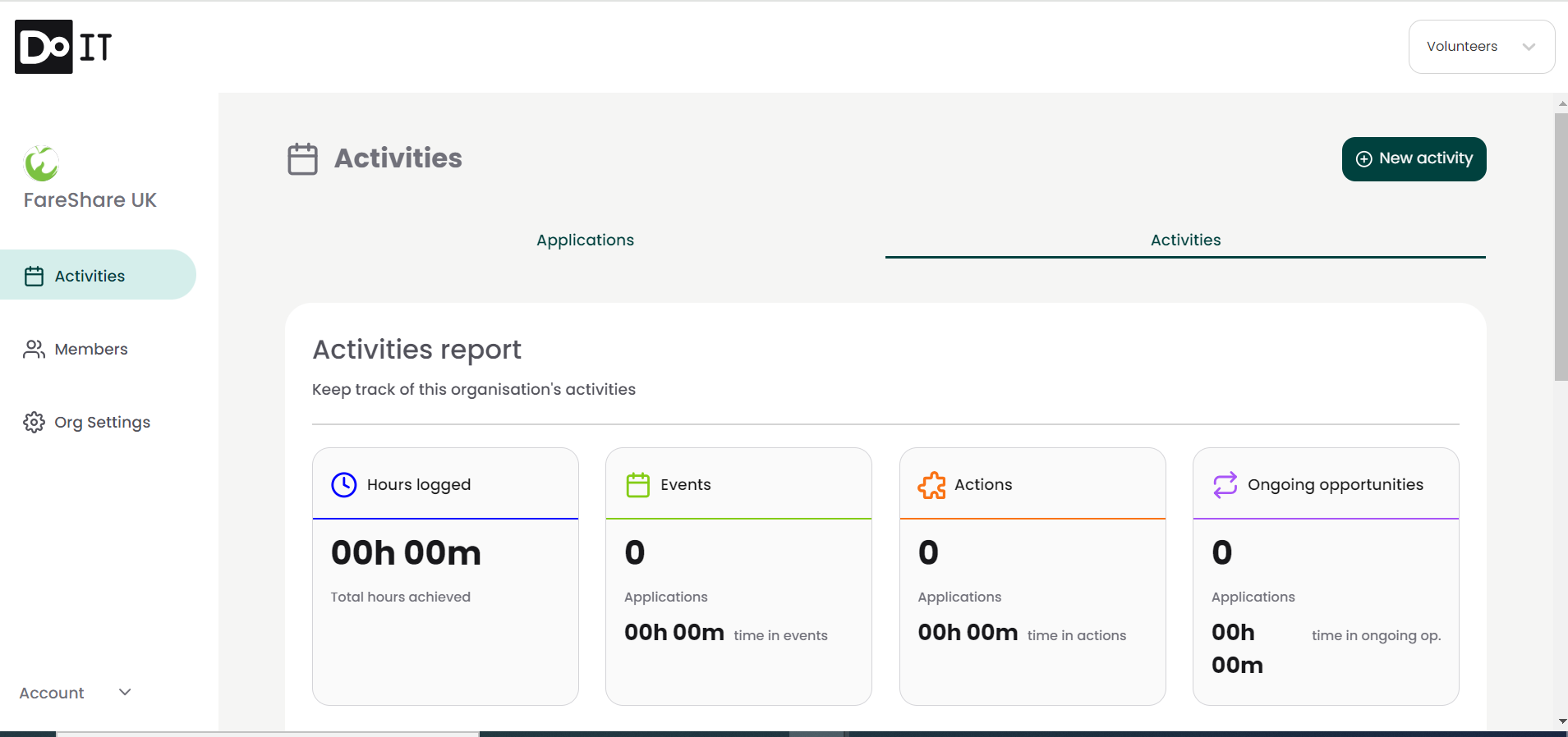 3. You will be directed to your organisation’s profile, opening on the ‘Activities’ page.