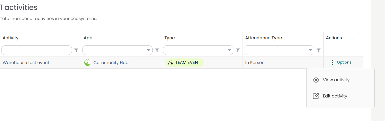 6. Click the three dots on the right of the opportunity you wish to update and select ‘Edit activity from the dropdown.