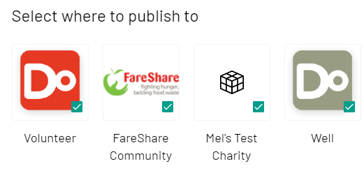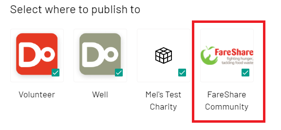 When adding a volunteer opportunity, you should publish the opportunity to Volunteer, Well and the FareShare Community.