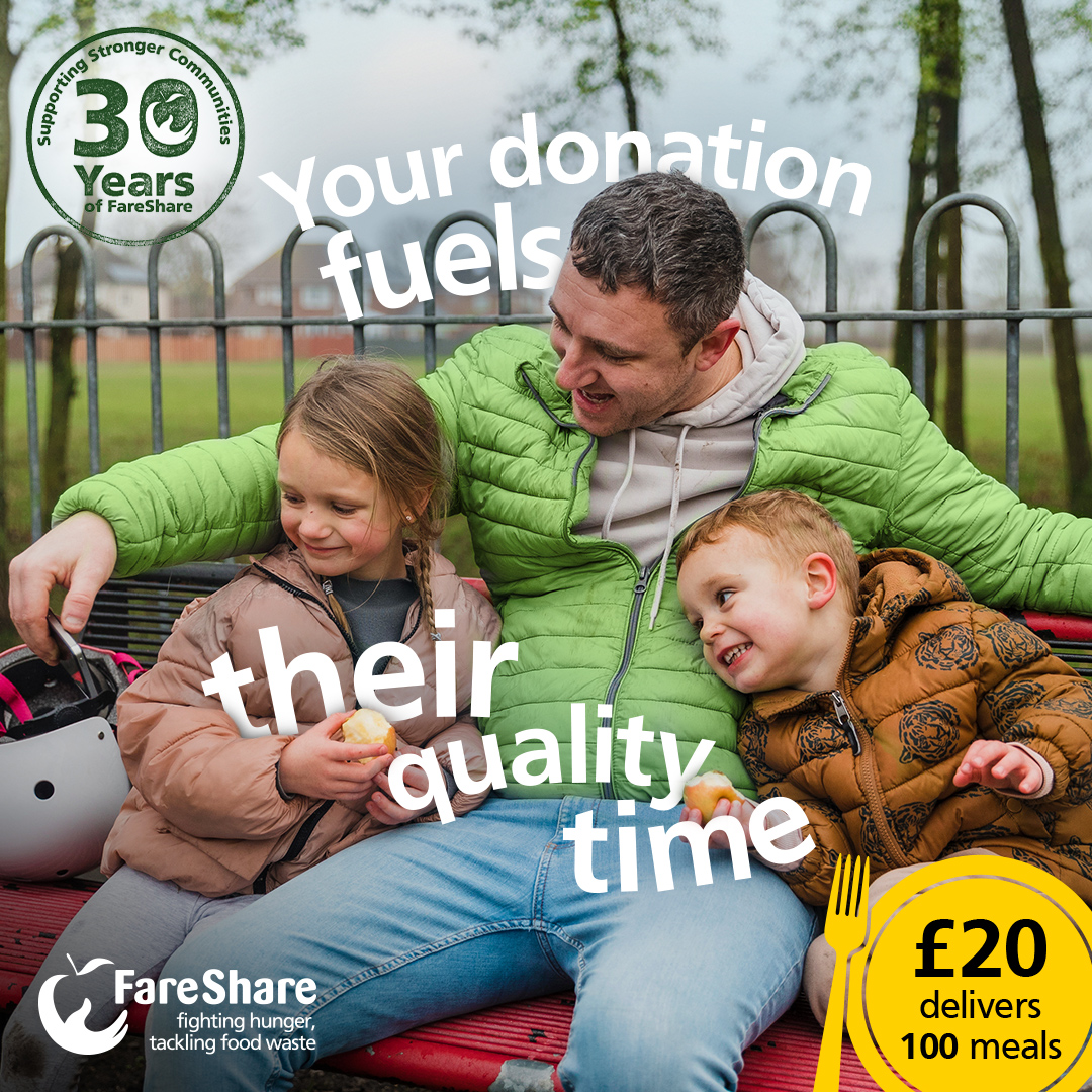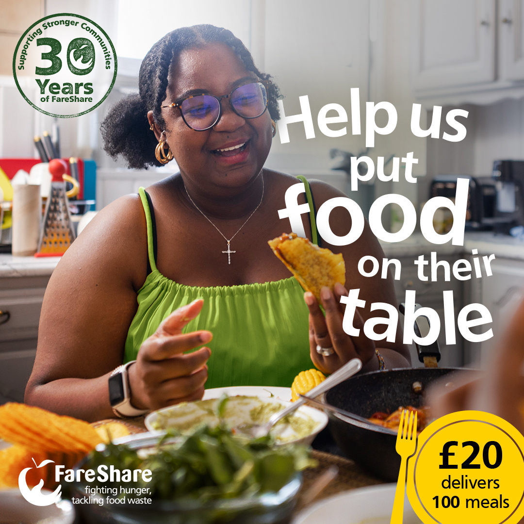 A donation does more than tackle hunger. Your £20 donation will help redistribute the equivalent of 100 nutritious meals to frontline charities and community groups — so people facing food insecurity have the fuel to live fuller lives.