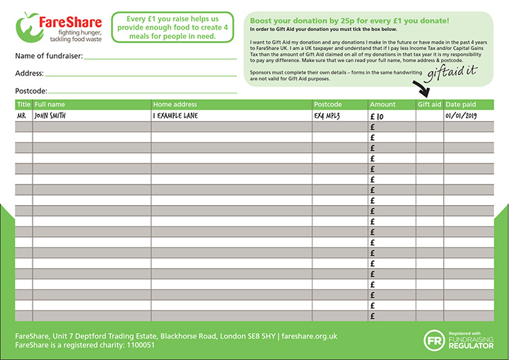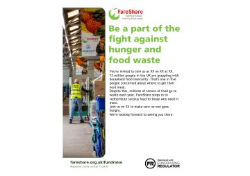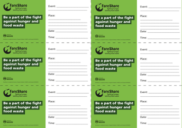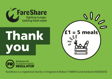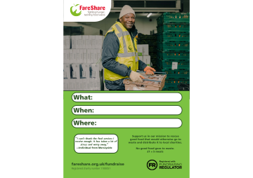 We can also send you FareShare fundraising leaflets, T-shirts and a collection bucket.