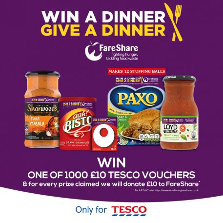 From January 1st to the 30th of September, 2022 Premier Foods will be running a ‘Win a dinner, Give a dinner’ on-pack competition on Oxo, Bisto, Paxo, Lloyd Grossman and Sharwood selected lines, exclusively in Tesco stores, giving consumers the chance to win £10 vouchers. For every competition entry £10 will be donated to FareShare.