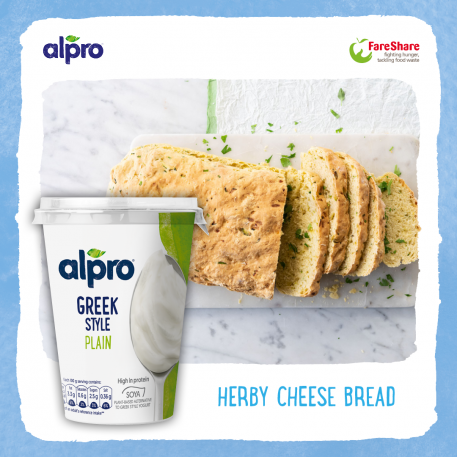 - Stir in grated courgettes, herbs, Alpro Plain or Greek-style alternative to yogurt, cheese and seasoning, stir well to combine