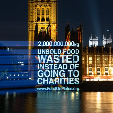 On The International Day of Awareness of Food Loss and Waste, food charity FareShare beamed falling carrots onto landmarks across the capital, including the Houses of Parliament – as they called on government to commit to vital food waste funding.