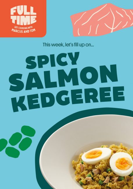 - Once the rice is cooked, remove the pan from the oven. Drain the tin of salmon and add this to the rice along with the peas, then stir it all together and leave it to stand for 2-3 minutes to warm through. Top with a squeeze of lemon juice.