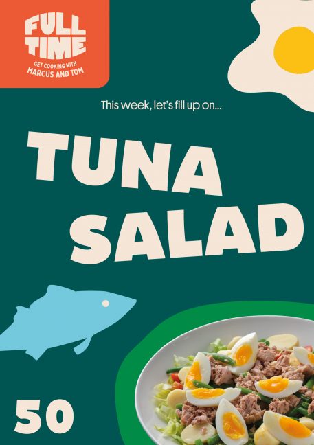 - Open the tuna and carefully pour 2 tbsp of the sunflower oil into a separate small bowl, then remove the tuna from the tin with a fork and scatter on top of the salad.