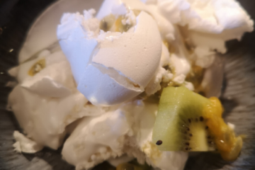 Mini Meringue Pavlova with cream and fruit bowl leftovers