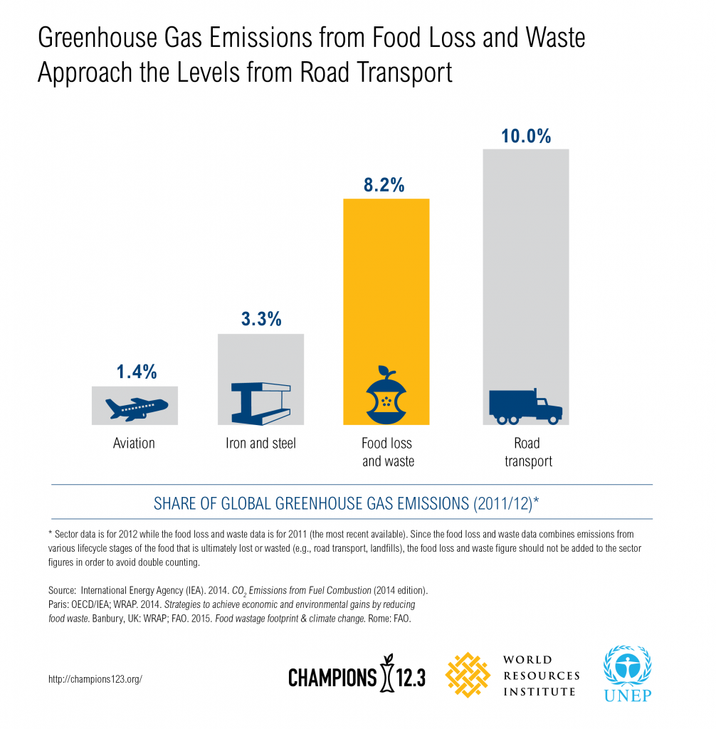 The Institute says that globally, food loss and waste generates more than four times as much annual greenhouse gas emissions as aviation and is comparable to emissions from road transport.