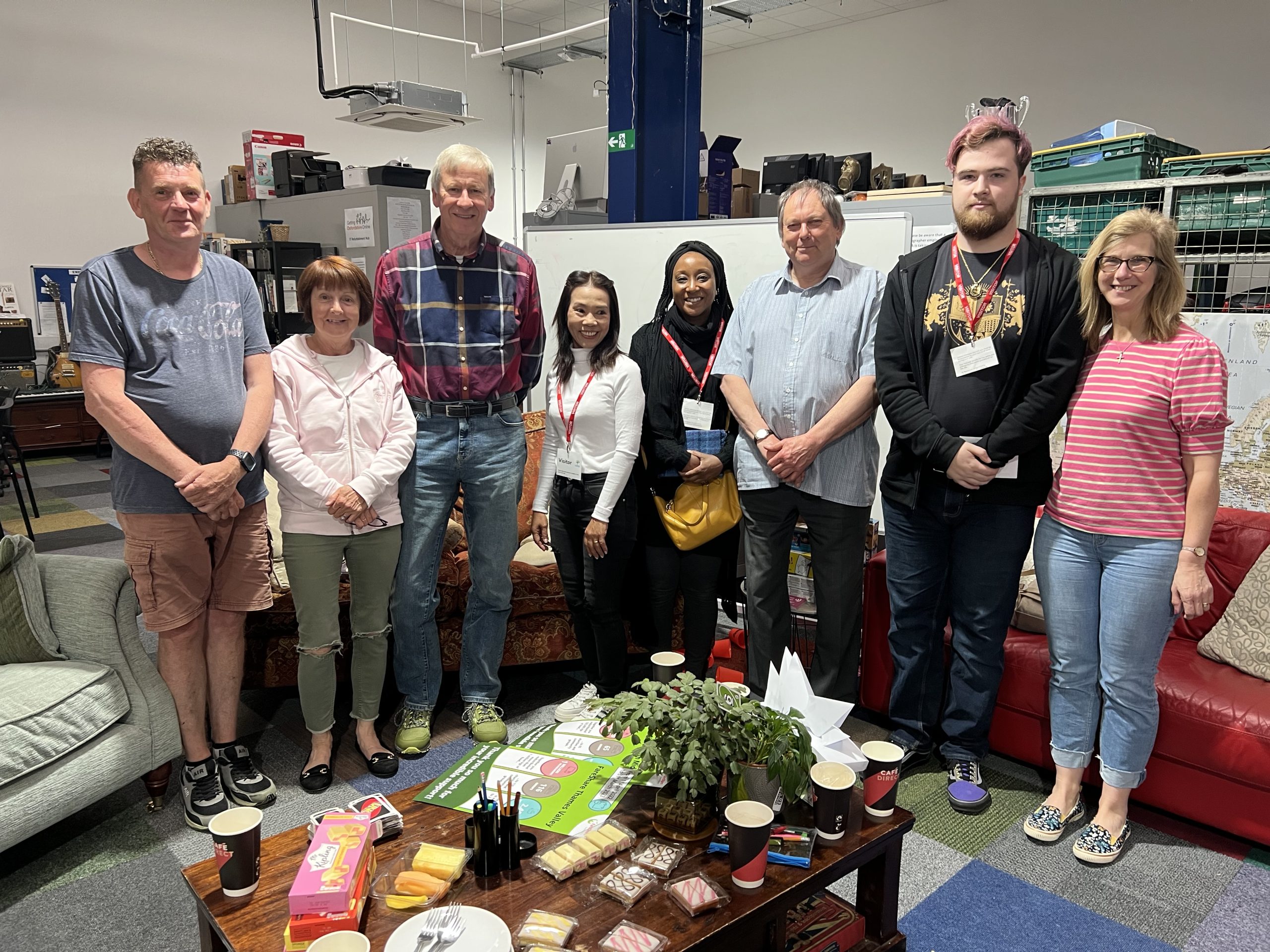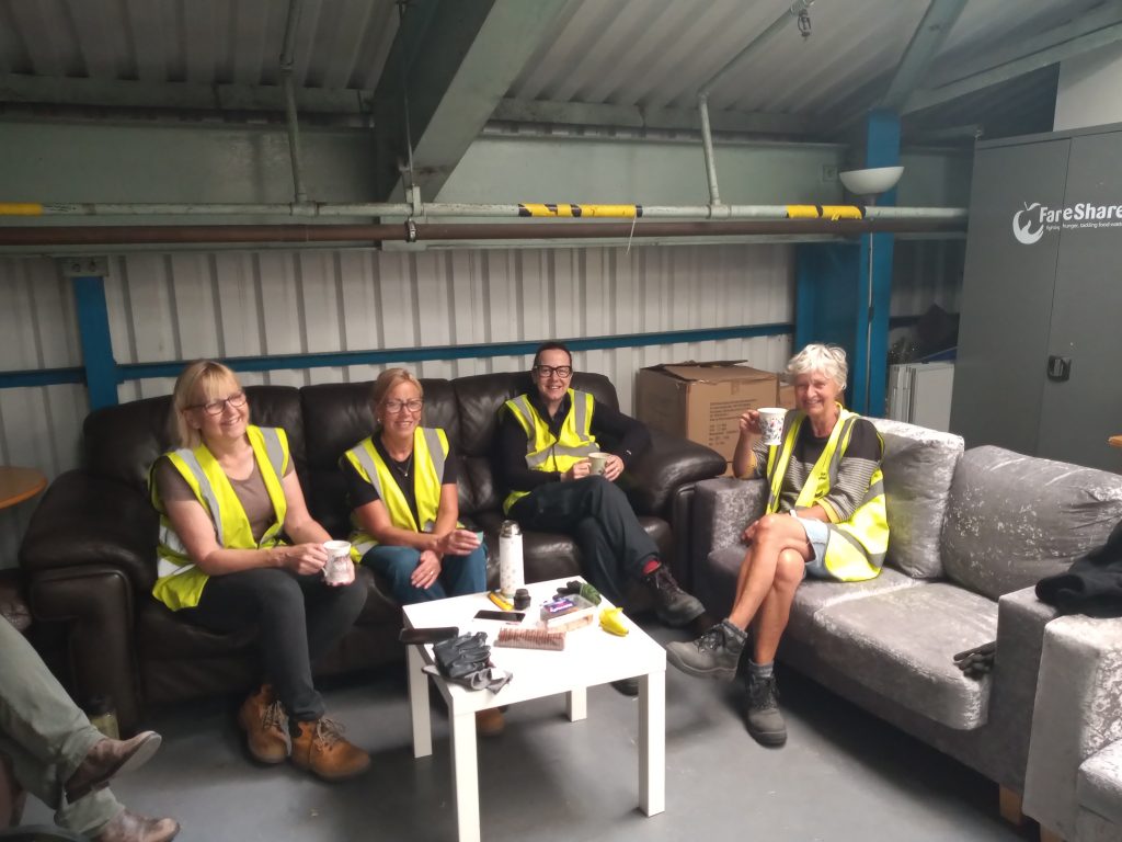 Volunteers at FareShare Thames Valley take a group photo before tucking into cakes and tea