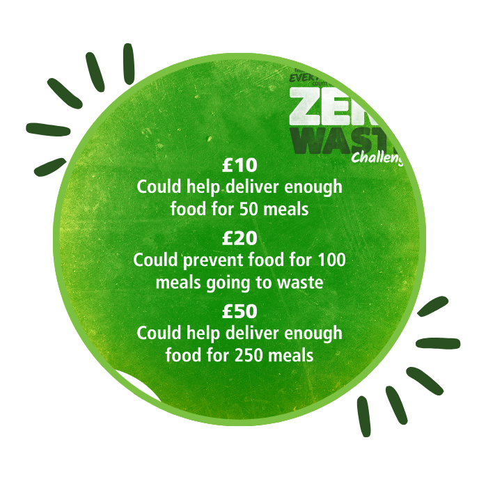 From using scraps to make stock, freezing spare ingredients, or using some food items in other ways like compost, there are many ways you can reduce your food waste at home. We know this is a tough challenge, but for every £1 you raise, we can deliver five meals to people who desperately need our help. Commit to two weeks or one month waste-free – but remember that you can always take a day off. Waste less and give more, but make it manageable for you!